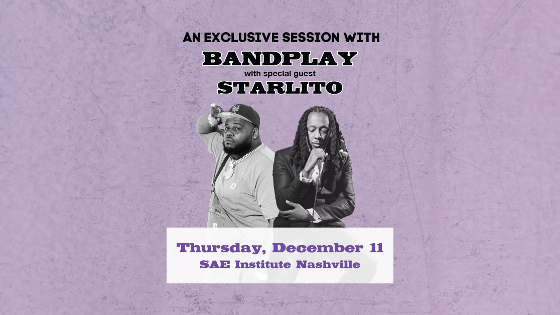 Join us Thursday, December 11, from 1 to 4 pm. Bandplay and Starlito will be on campus to share their stories, hear your tracks, and answer your questions.